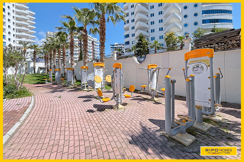 Комплекс хорошо ухожен и предлагает жителям прекрасную зону с открытым бассейном и солнечными террасами. Также есть крытый бассейн, сауна, уличный спортзал и теннисный корт. Идеальное расположение — всего в 820 метрах от длинного песчаного пляжа. Махмутлар — оживлённый район с магазинами, супермаркетами, барами и ресторанами. Центр Аланьи находится всего в 12 км и легко доступен на местном транспорте.