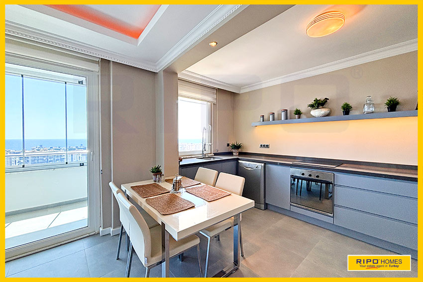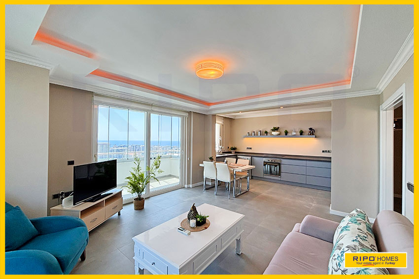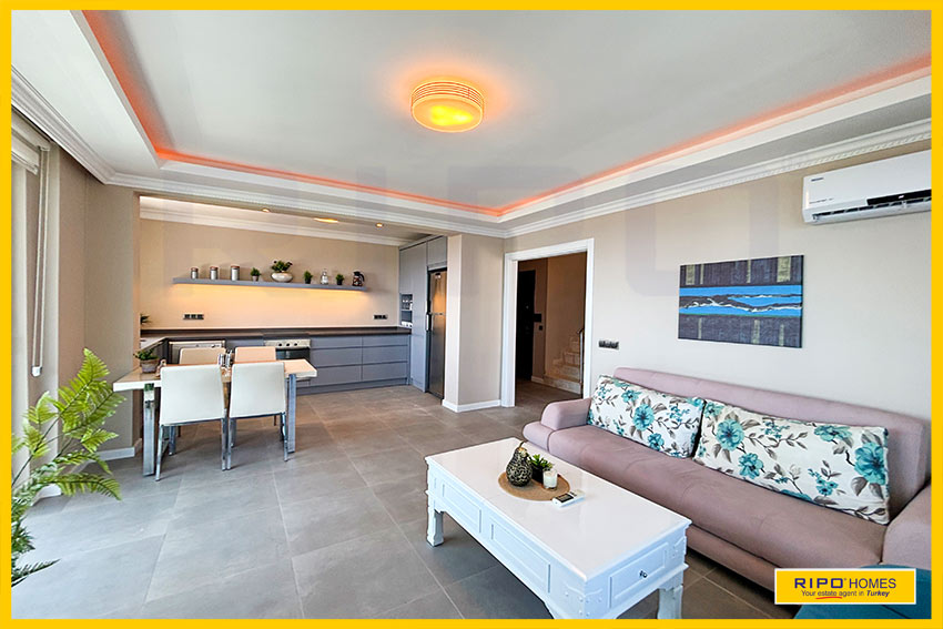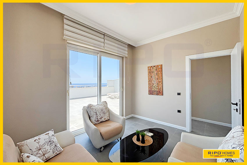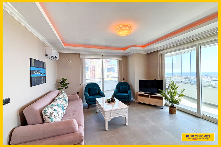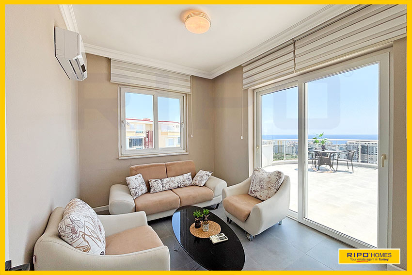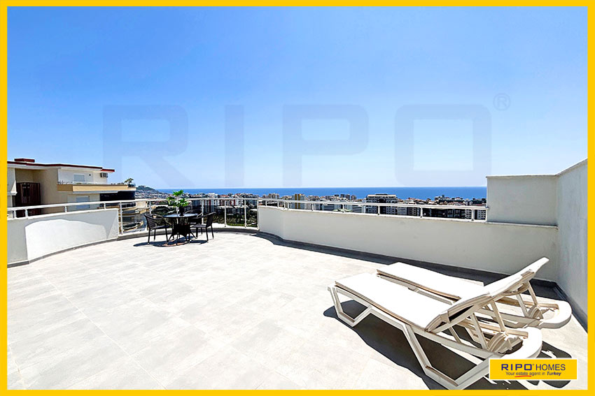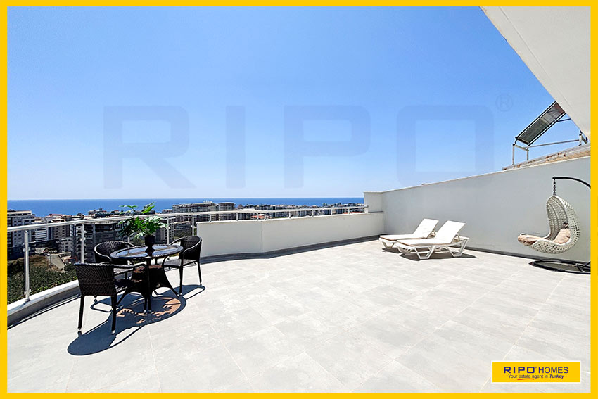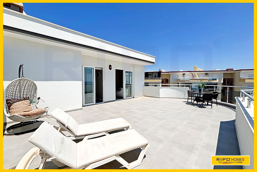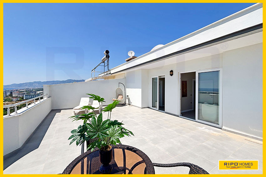 Fantastisk fin totalrenovert femroms penthouseleilighet i et meget bra anlegg i Mahmutlar, Alanya, med fantastisk havutsikt.