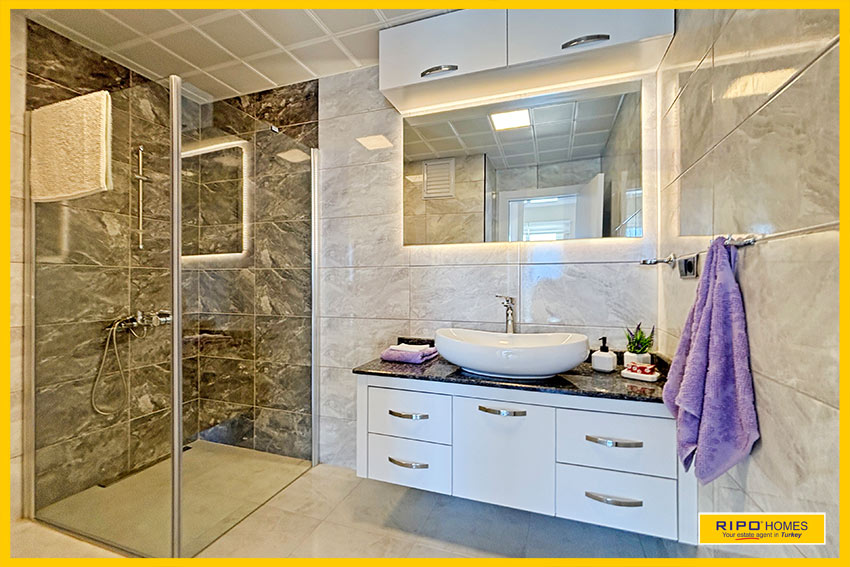 Anlegget er fantastisk pent, med kjempestor hage med en utendørs BBQ og sittegruppe. Beboerne har også tilgang til et stort, fristende svømmebasseng med solterrasse, og den lange sandstranden er bare 1300 meter unna. Lokale butikker, barer og restauranter i Mahmutlar er bare en spasertur unna, og til de historiske severdighetene i Alanya er det bare 12 km.